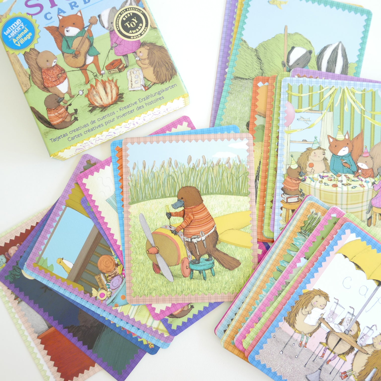 36 Tell me a story flash cards beautifully illustrated with animals in various scenes.