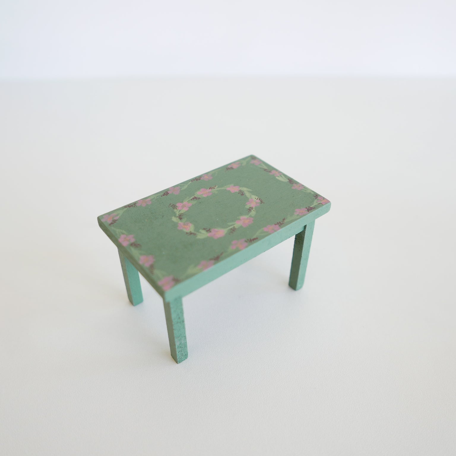 Our sweet Garden Rose dining table, hand painted in the Gala studio with natural paints, watercolour and a light varnish. Perfect size for a dolls house dining room.
