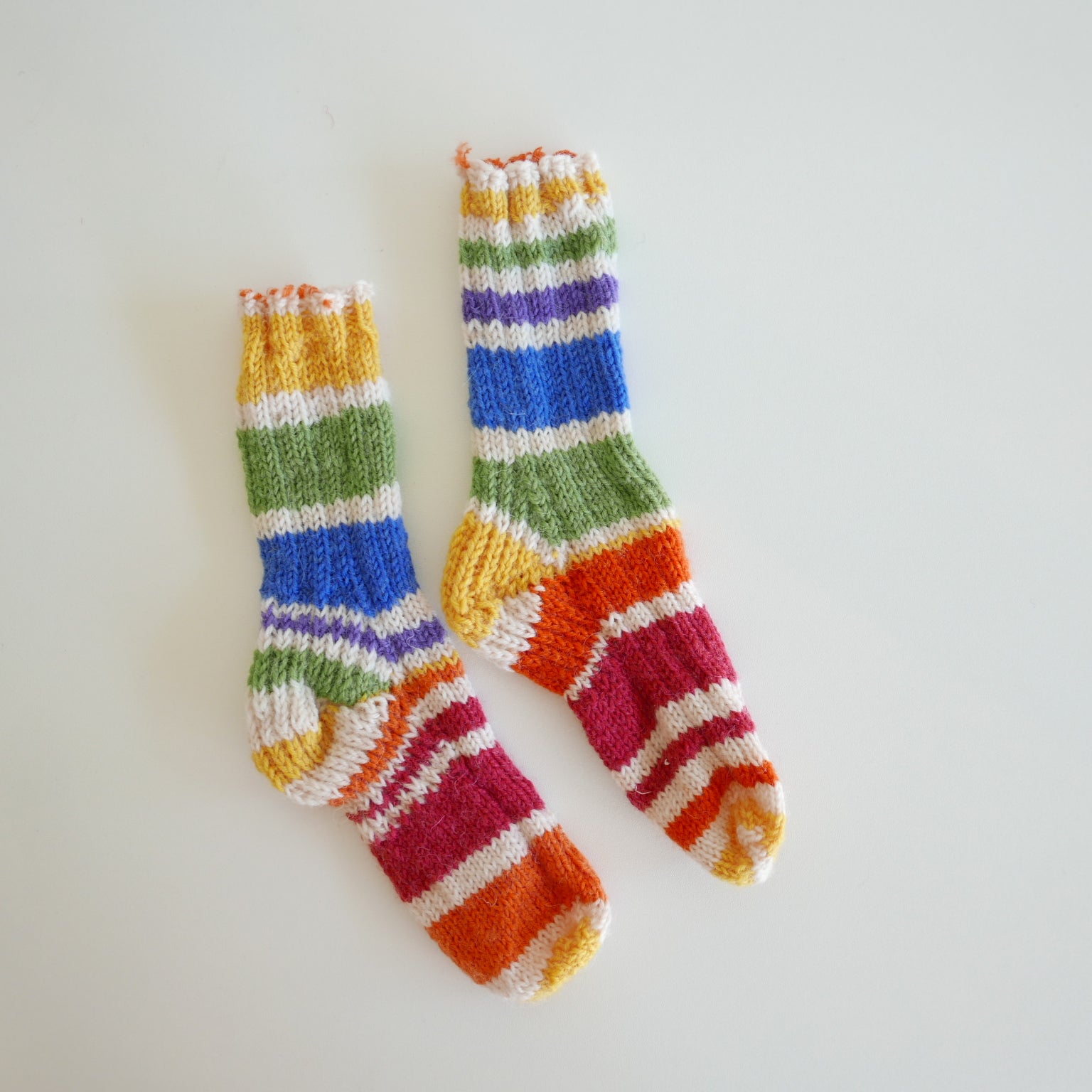 Gorgeous hand knitted wool socks. Made in variegated yarn so each sock is a little different to the other.