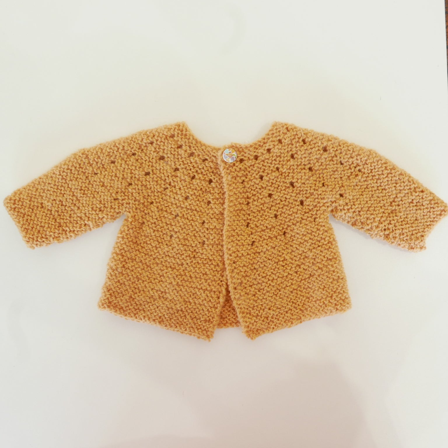 Such a sweet little sunshine yellow cardigan with a wooden button.