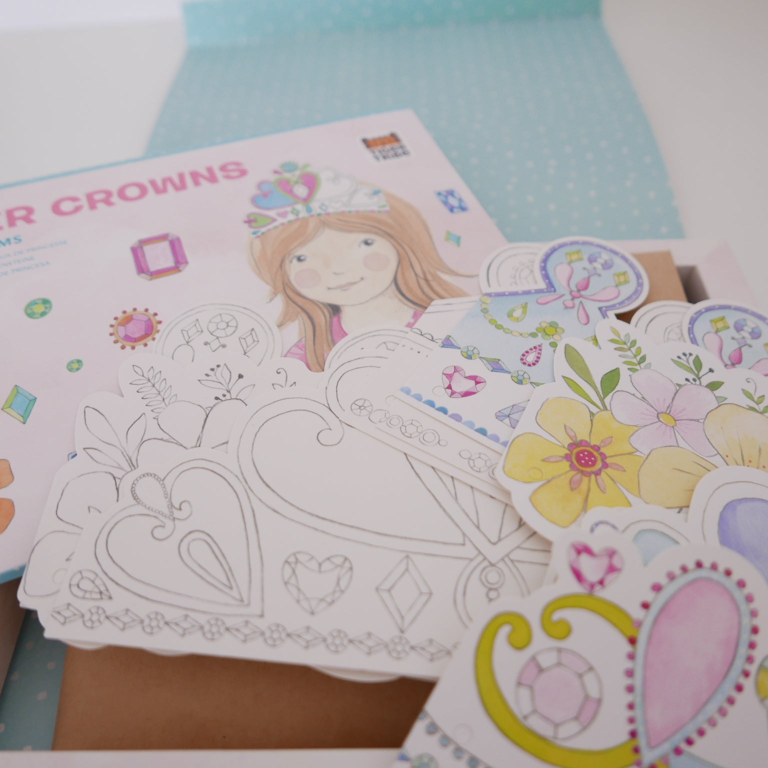 Colour and decorate gorgeous crowns, tiaras and floral head-pieces with glittering gems and jewels - a must have for any little princess.